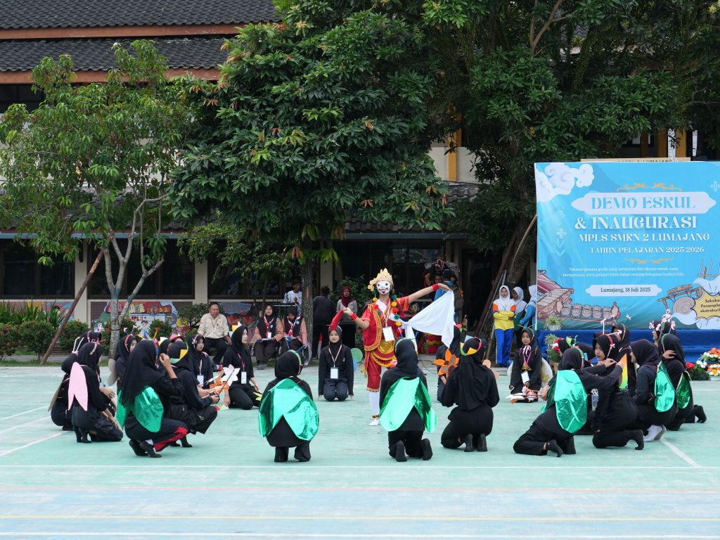 Serangkaian kegiatan MPLS SMKN 2 Lumajang ditutup dengan puncak kegiatan berupa Demo Ekstrakurikuler dan Pentas Seni yang menampilkan berbagai bakat, kebolehan, dan prestasi dari esktrakurikuler yang ada di SMKN 2 Lumajang. Ya! Ada sekitar 20 ekstrakurikuler di SMKN 2 Lumajang yang menjadi wadah bakat dan minat siswa.  Dengan adanya demo ekskul ini diharapkan ketertarikan siswa baru untuk mengembangkan bakat dan minat yang dimiliki semakin besar. Selain itu, siswa baru kelas X juga diwajibkan menampilkan pertunjukan bakat dari masing-masing kelas. Kegiatan ini bertujuan untuk menemukan bibit-bibit kreativitas siswa baru. Berbagai tampilan yang diunjukkan oleh siswa antara  lain seni daerah Barongan, tari Topeng, dan drama. Wah! Semangat selalu ya siswa baru!
