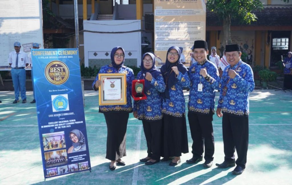 Lumajang, 2/7/2025 – Kepala SMKN 2 Lumajang, Ibu Lilik Majidatut Zahro, M.Pd, meraih prestasi Best Innovation Choice Award Excellent Vocational School of Innovation and Quality Learning Program of The Year 2025. Prestasi ini diperoleh berdasarkan inovasi terbaik yang terus dimunculkan oleh Kepala Sekolah maupun guru yang menjadi stakeholder dalam meningkatkan kualitas pendidikan di sekolah Kejuruan.